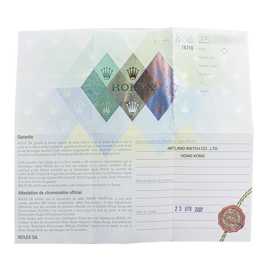 | コンディション | ガラス:4時位置に薄っすらと線傷があります 文字盤・針:大変綺麗な状態 ベゼル:特筆すべきダメージはなく大変綺麗な状態 ケース:サイド部分にポツポツと打ち傷跡が残りますが、特筆すべきダメージはなく概ね綺麗な状態 ブレスレット:伸びは少なく、特筆すべきダメージはなく大変綺麗な状態 |