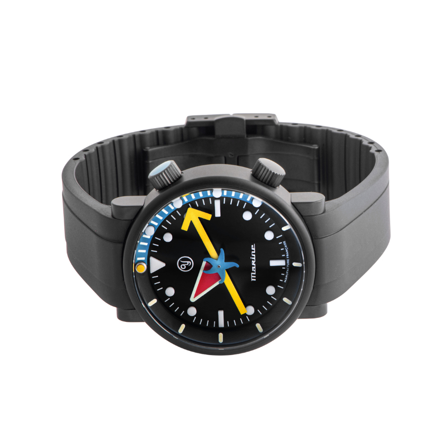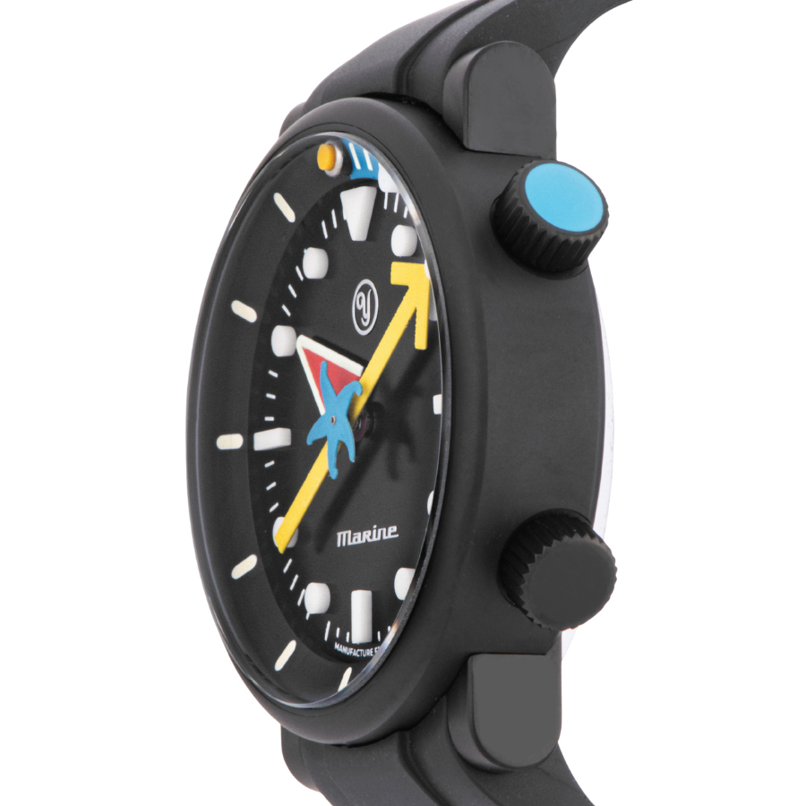 | 商品説明 | ☆世界500本限定、フランスが誇る時計ブランドYEMAとアートデザイナー アラン・シルべスタインのコラボモデル。 ブラックDLCチタンケースに、赤・黄・青の幾何学的な配色が映える大胆デザイン。内装は自社製マイクロロータームーブメント「CMM.20」を搭載し、70時間のパワーリザーブを実現。 芸術性と実用性を融合した、唯一無二の逸品です。 |