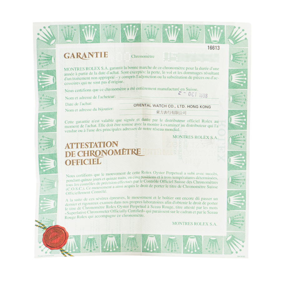 | コンディション | ガラス:キズや欠けはありません 文字盤・針:大変綺麗な状態 ベゼル:1時位置と3時位置に微細な線傷が見受けられますが、綺麗な状態 ケース:サイドにポツポツと打ち傷は見受けられますが、目立つ程ではなく綺麗な状態 ブレスレット:微細な拭き傷や使用傷が僅かに残るが、目立つ傷はなく綺麗な状態 ※弊社で研磨仕上げ済み |