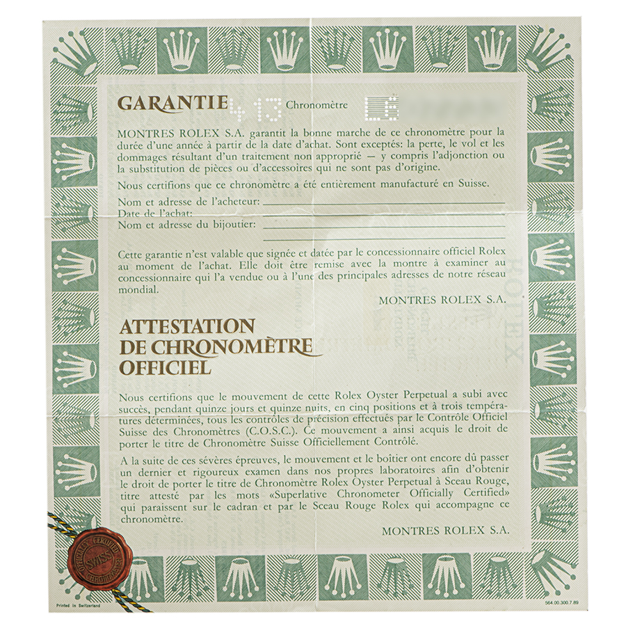 | コンディション | ガラス:欠けやキズはありません 文字盤・針:大変綺麗な状態 ベゼル:目立つ傷はなく綺麗な状態 ケース:1カ所だけほんの小さな当て傷があります。その他目立つ傷はなく大変綺麗な状態。 ブレスレット:経年によるブレスの伸びはあるが、使用によるダメージはなく綺麗な状態 ※弊社で研磨仕上げ済み |