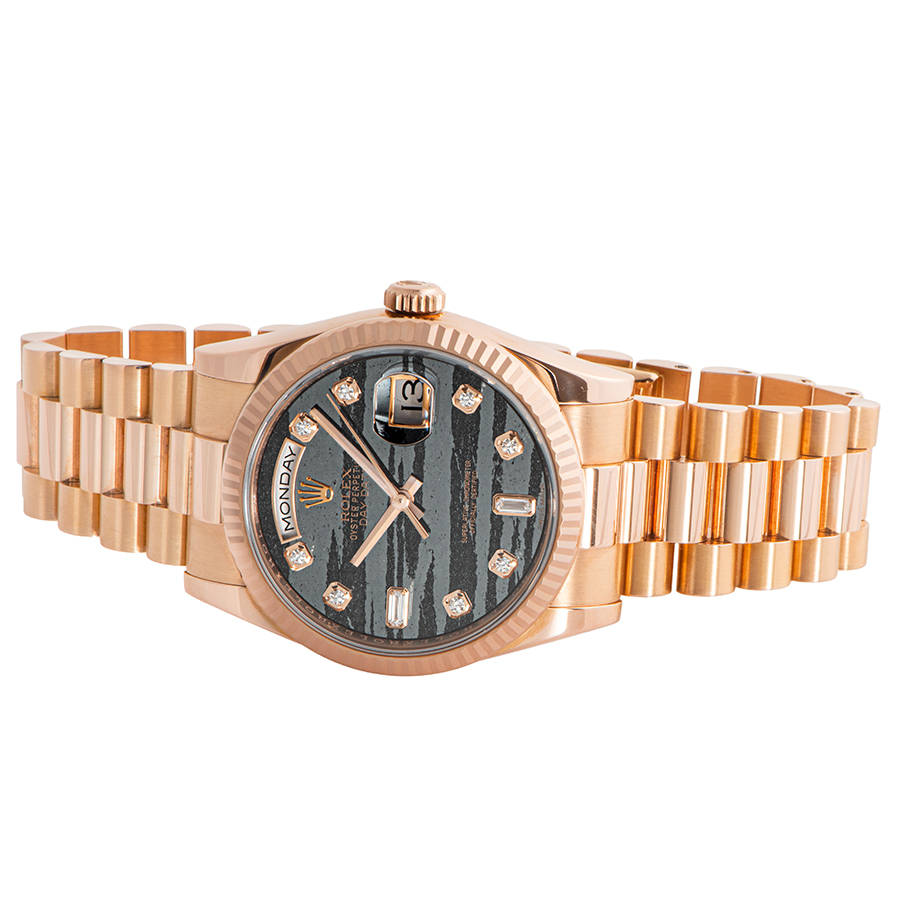 | 商品説明 | ☆K18PG製フェライトダイアルのデイデイトが入荷致しました。 特殊素材のフェライトを使用したモデルで、このダイアルは同じ模様が一つとしてなく、まさにオンリーワンな時計です。 非常に希少性が高く中古市場でも数少ないモデルの一つです。 |