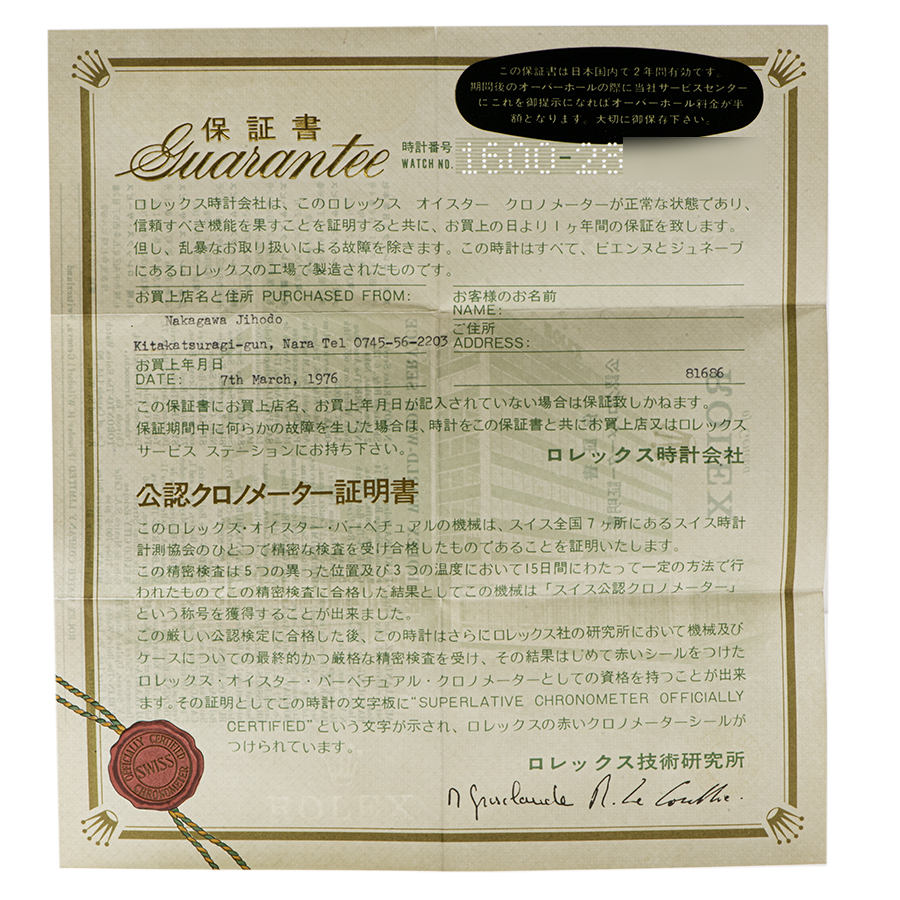 ロレックス デイトジャスト 1600 1971年製