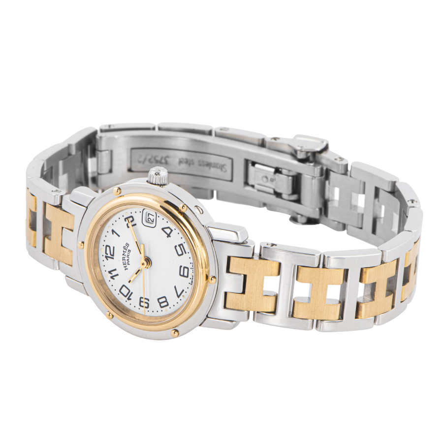 | 商品説明 | ☆エルメス定番モデルのクリッパーです。 19世紀に使用されていた3本のマストの付いた大型快速船の舷窓デザインを原型とし、ベゼルにあしらったビスで忠実に再現しています |