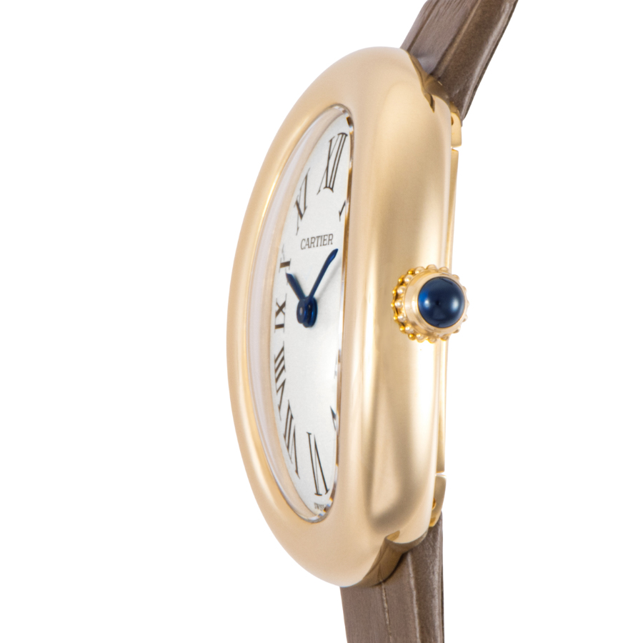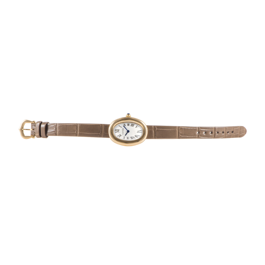 | 商品説明 | ☆柔らかなオーバル型ケースが特徴の「ベニュワール」は、カルティエの上品な美学が息づく一本。 18Kイエローゴールドのケースが肌なじみが良く輝き、ローマンインデックスとブルースティール針がクラシックな魅力を添えます。 手元を可愛らしく、そしてエレガントに演出する、小ぶりで洗練されたタイムピースです。 |
