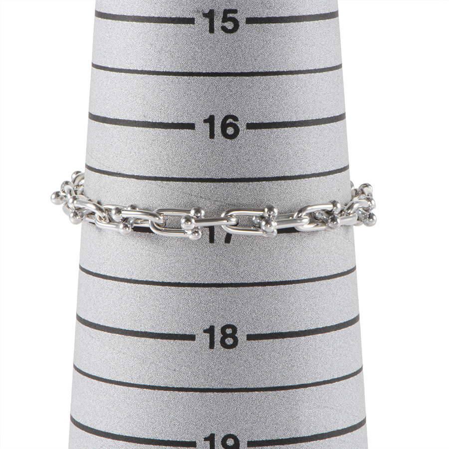 | サイズ | ベルト幅:約0.65cm リンク サイズ:スモール 内周:約17cm 全長:約19cm 重さ:約17.7g |