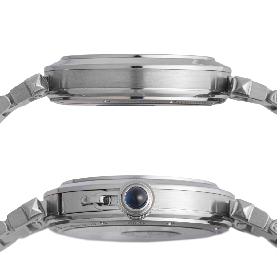 | 商品説明 | ☆ラウンド型のケースに、ミニチェーンでケースに固定したねじ込み式リューズプロテクターが特徴的なパシャ。 時・分・アラビア数字を象るスケルトンブリッジになっており、表裏共に愉しめるモデルに仕上がっております。 自社製ムーブメント 「9624MC」搭載 |