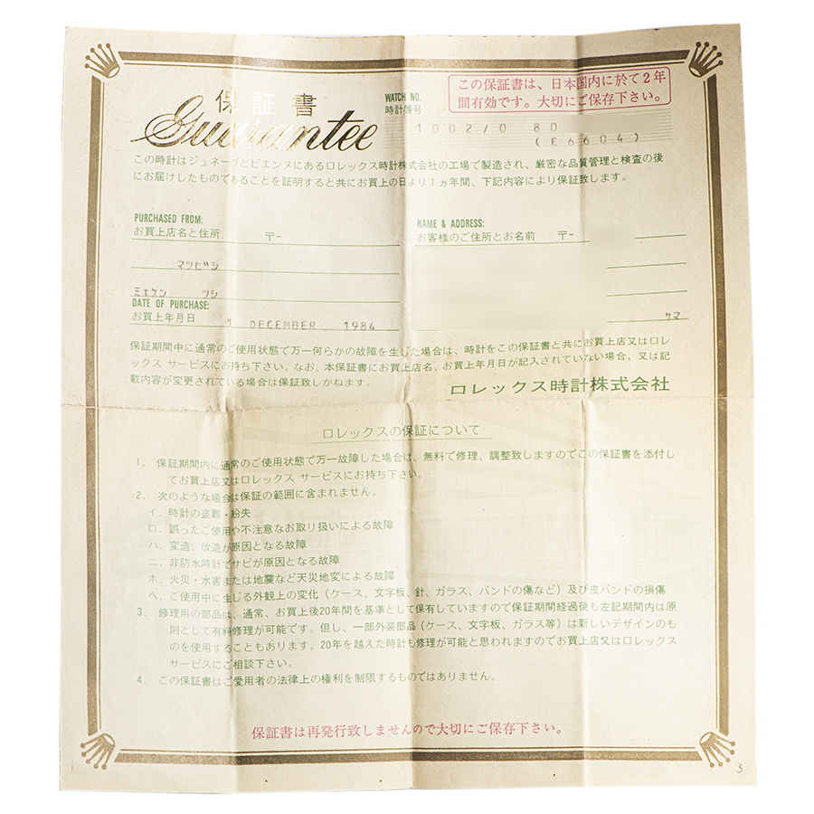 ロレックス オイスターパーペチュアル 1002 1984年製