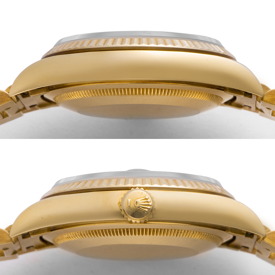 | 商品説明 | ☆文字盤に世界三大銘木の一つであるウォールナットを使用した珍しいモデルとなります。 天然木の特徴は同じデザインが2つと存在しない点で、保証書が一緒に残っている非常にレア度が高いモデルとなっております。 ※ケース痩せが少なく、敢えて外装仕上げは行っていませんので金無垢モデル特有の変色が見られ使用に伴う傷がありますが、ブレスの伸びも少なく目立つ大きな傷などなく概ね綺麗な状態です。 |