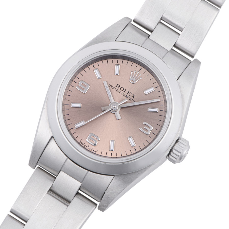 | 商品説明 | ☆レディースモデルで人気の高いオイスターパーペチュアルの3.6.9インデックスのピンクダイアルです。 ※外装仕上げ済みで、目立つ大きな傷などなく大変綺麗な状態です。 |