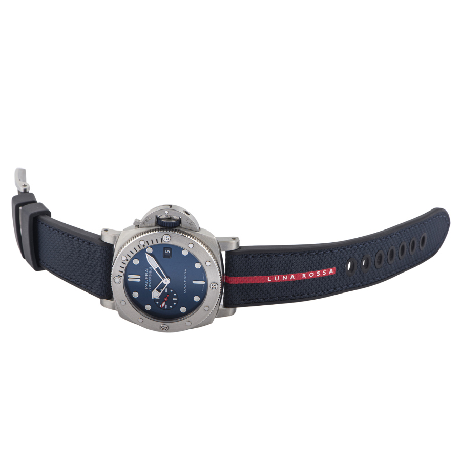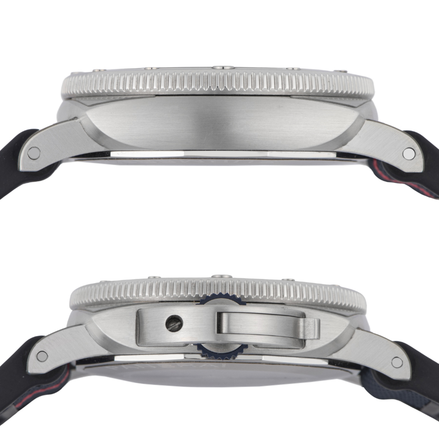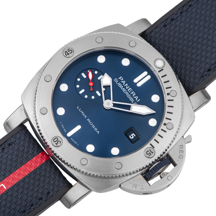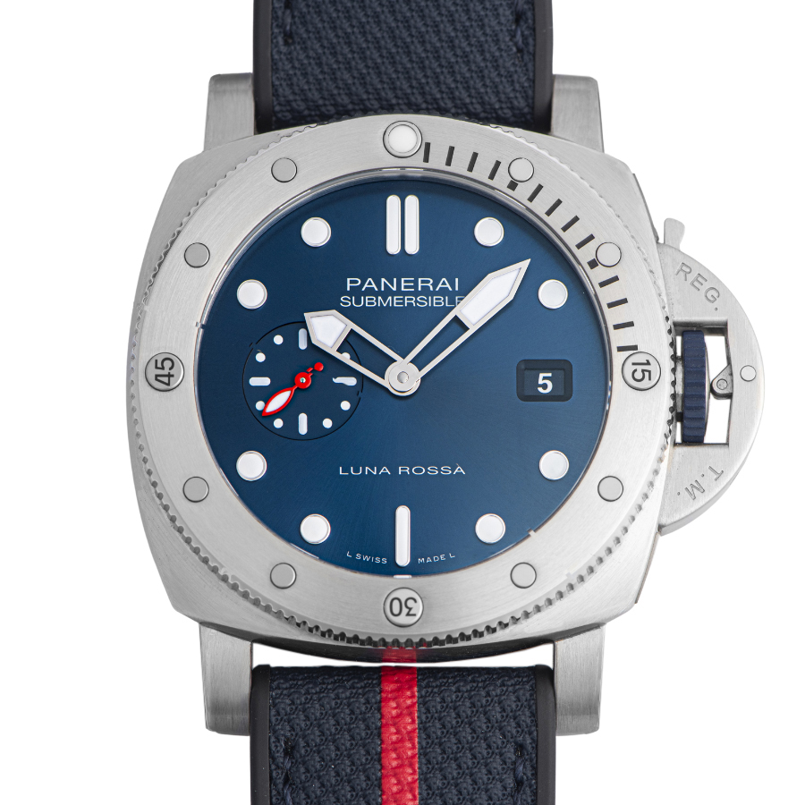 | 商品説明 | ☆パネライのパートナーであるイタリアのヨットチーム「ルナロッサ・プラダ・ピレリチーム」のアメリカズカップ出場を記念し、1500本の限定品として発売されたモデルです。 ダイヤルのブルーカラーに合った、赤いラインに白のルナロッサ ロゴがアクセントになったダークブルーのバイマテリアルストラップが特徴的なデザインとなっています。 ※目立つ傷はなく大変綺麗な状態です。 |