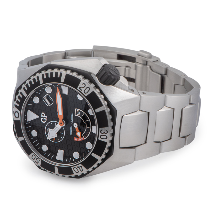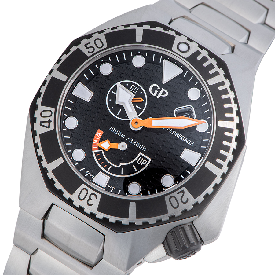 | 商品説明 | ☆数少ない完全自社生産のマニファクチュールブランドとして有名なジラール・ペルゴ。 1000Mの防水を誇る本格ダイバーズウォッチ、シーホークが入荷しました。 ブラックの文字盤には視認性の良いオレンジの針とホワイトのインデックスで視認性を上げています。 4時位置に配置されたリューズは人間工学に基づいて独自のリューズガードによって保護され、快適な装着感を得ることができます。 ※外装仕上げ済みで特筆すべきダメージはなく大変綺麗な状態です。 |