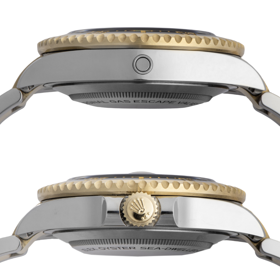 | 商品説明 | ☆シードゥエラーシリーズ初となるコンビモデルとして2019年に誕生。 文字盤の“SEA-DWELLER” が赤色で記されていましたが、126603ではコンビ仕様のゴールドカラーで記され、通称「金シード」とも呼ばれます。 |