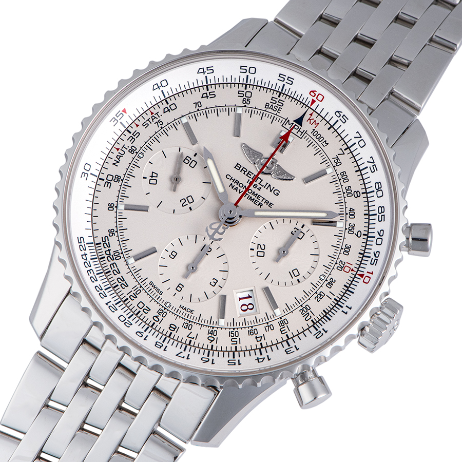 | 商品説明 | ☆自社開発ムーブメント、キャリパー01を搭載した「ナビタイマー01」のリミテッドモデルです。 レギュラーモデルではラインナップされなかったシルバーのダイヤルを採用しておりそれに合わせて12時位置のエンブレムの色が変更され、デイト表示も黒地から白地になっています。 ※外装仕上げ済みで特筆すべきダメージはなく大変綺麗な状態です。 |