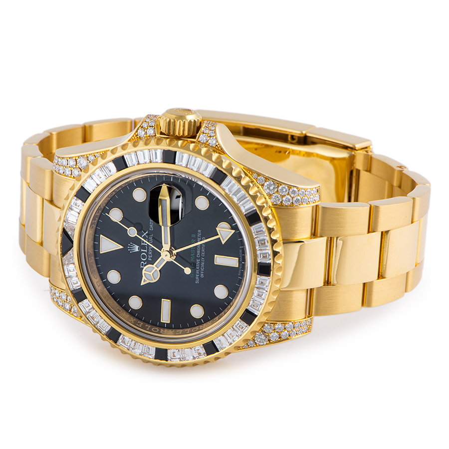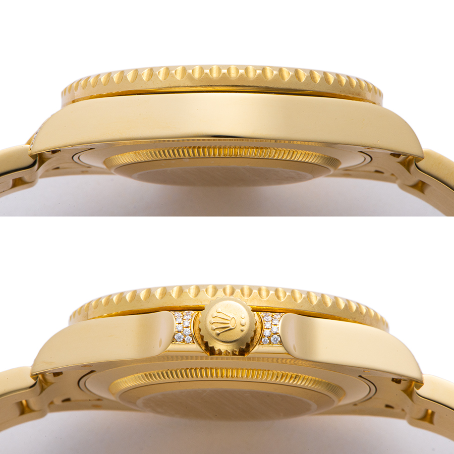| 商品説明 | ☆こちらのGMTマスター2はベゼルにバゲットのダイヤ&サファイアがセットされています。 ケース本体やリューズガードにもダイヤモンドが施された豪華なモデルです。 市場ではあまりお目にかかれないレアな個体になります。 ※外装仕上げ済みで目立つ大きな傷などなく大変綺麗な状態です。 2021/6にメーカーでOHを行っております。 |