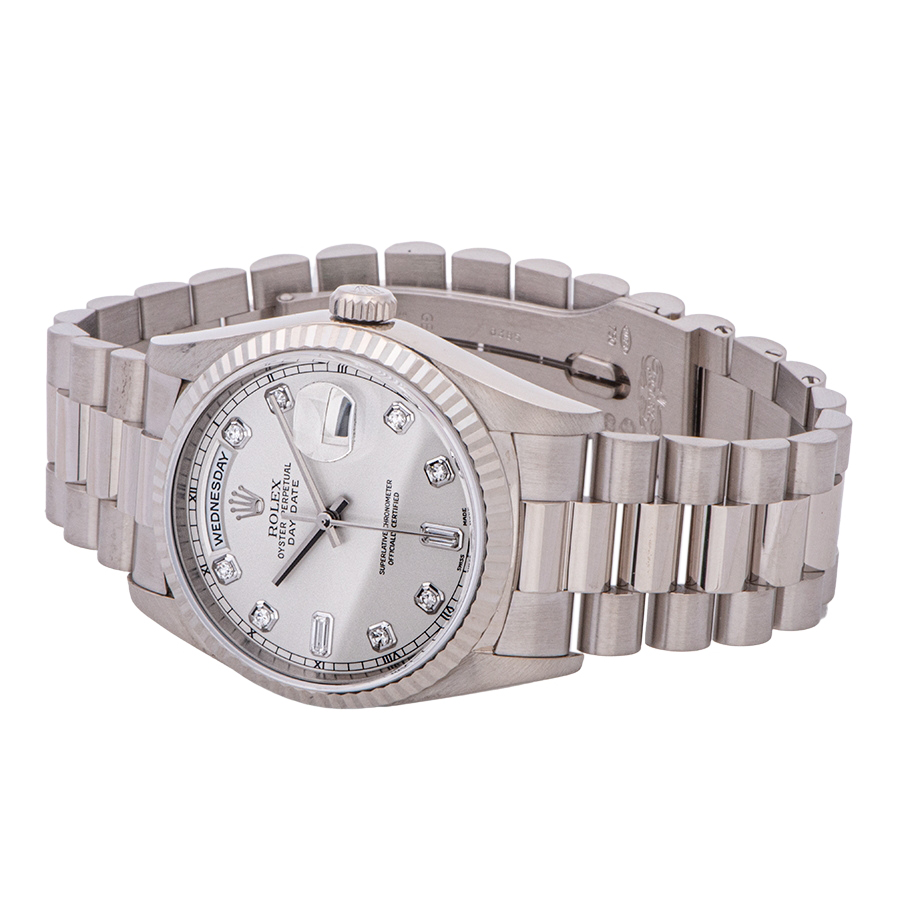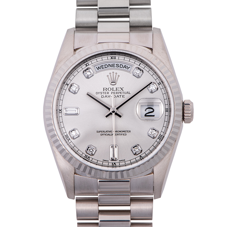 | 商品説明 | ☆ロレックスのラインナップの中で最上級に位置するのがデイデイトです。素材はゴールドもしくはプラチナ素材のみというラインナップで、ロレックスで唯一フルカレンダー表示を搭載するモデルとなります。 ※外装仕上げ済みで微細な拭き傷程度は残ります。 目立つ大きな傷などはなく大変綺麗な状態です。 |