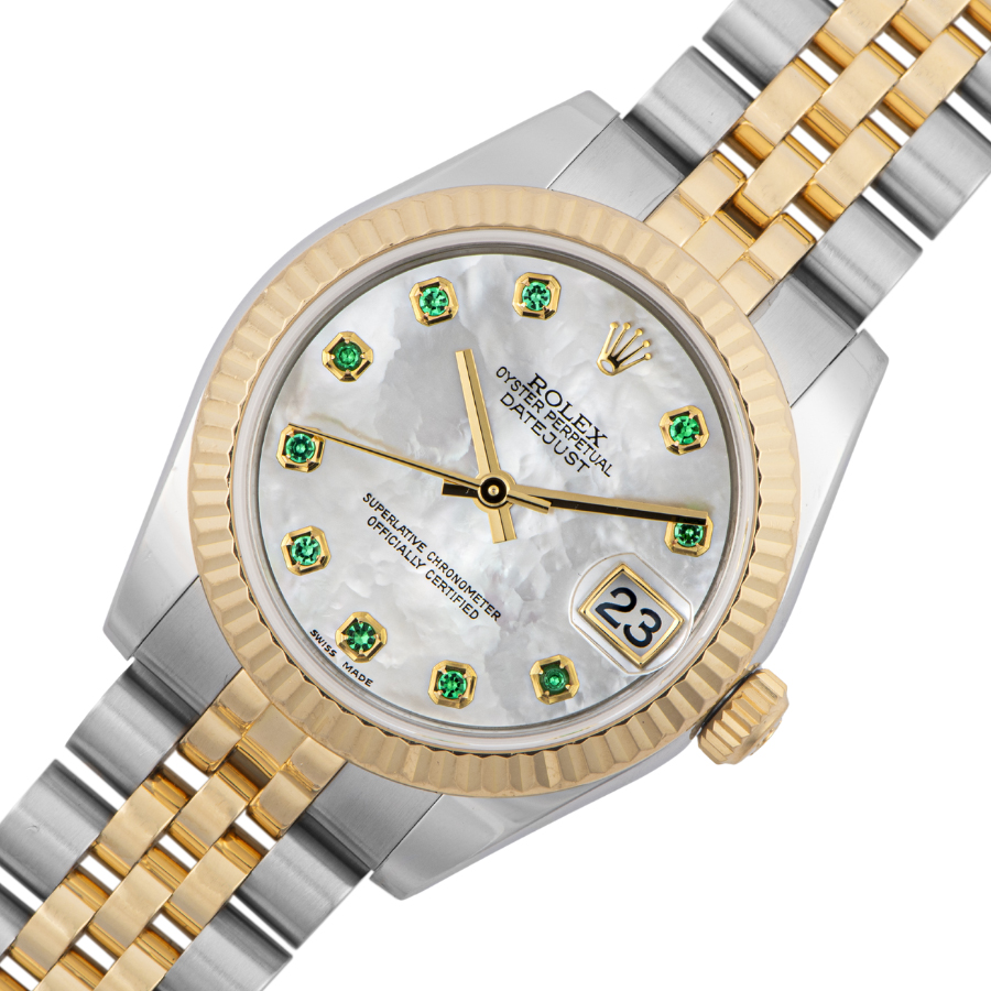 | 商品説明 | ☆デイトジャストのボーイズモデルが入荷しました。 シェルダイアルに10Pのエメラルドをセッティングした豪華なモデルです。 ※目立つ大きな傷などなく大変綺麗な状態です。 2023/12にメーカーでオーバーホール済みです。 |