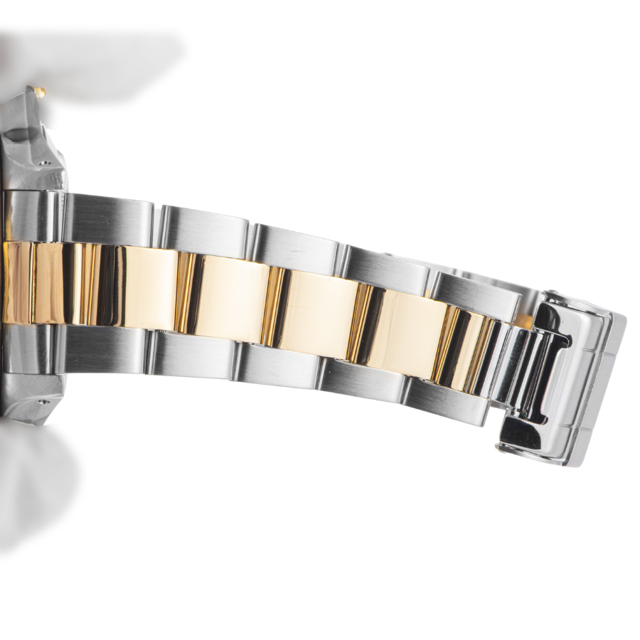 | コンディション | ガラス:爪でなぞると僅かに光っ借る程度のガラス欠けがあります。7時方向のガラス面にうっすらと線傷がありますが、正面からはわかりません。 文字盤、針:大変綺麗な状態 ベゼル:面に薄っすらとした使用傷や当て傷が僅かにあるが綺麗な状態 ケース:研磨で消しきれない、打ち傷跡や小傷跡がうっすらと散見されます ブレスレット:バックルに使用に伴う小傷、ブレスレットに微細な使用傷が残ります ※弊社で研磨仕上げ済み |
