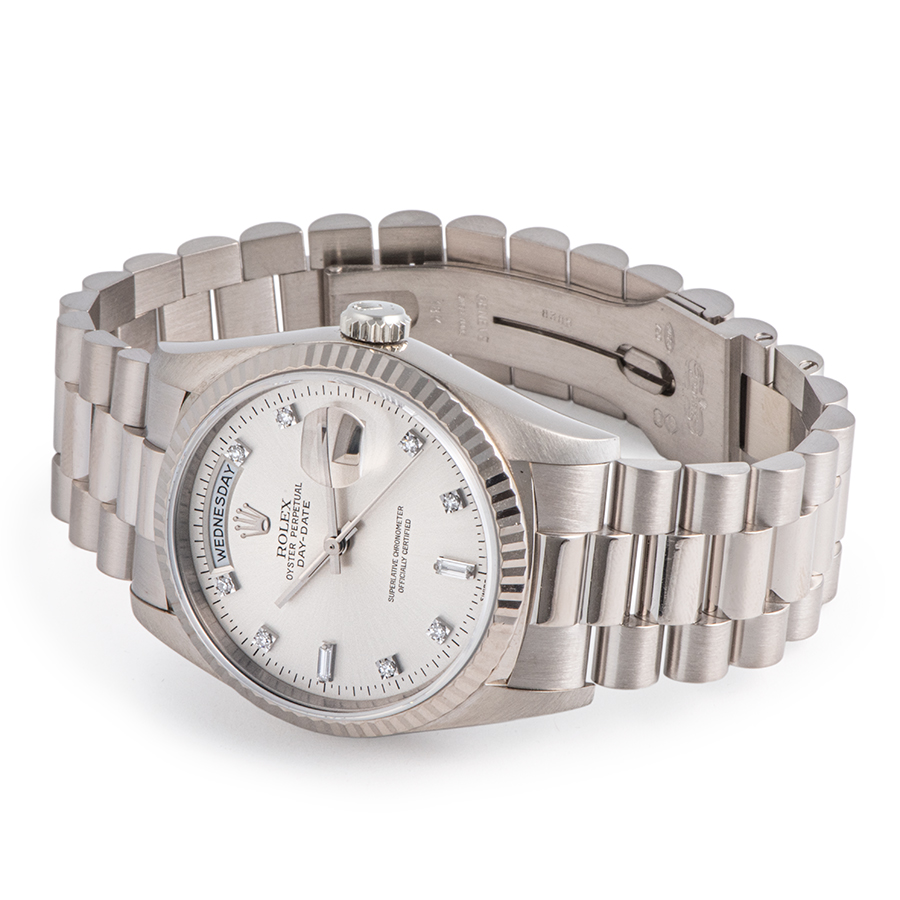 | 商品説明 | ☆ロレックスのラインナップの中で最上級に位置するのがデイデイトです。素材はゴールドもしくはプラチナ素材のみというラインナップで、ロレックスで唯一フルカレンダー表示を搭載するモデルとなります。 ※外装仕上げ済みで目立つ大きな傷などなく大変綺麗な状態です。 ブレス鏡面仕上げ部分にわずかに使用傷が残ります。 |
