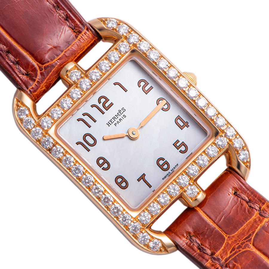 | 商品説明 | ☆丸みのあるケースデザインが特徴的なエルメスのケープコッドが入荷しました。 ケースと尾錠の素材にK18PG、文字盤にはホワイトシェルを使用し、 ベゼルにはダイヤモンドが施された高級感が漂うモデルです ※特筆すべきダメージはなく大変綺麗な状態です。 純製革ベルトにはほとんど使用感がなく綺麗な状態です。 |