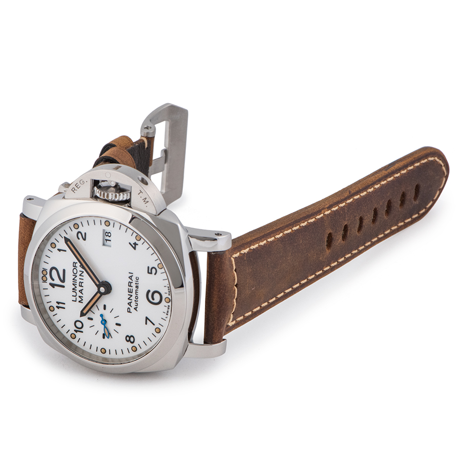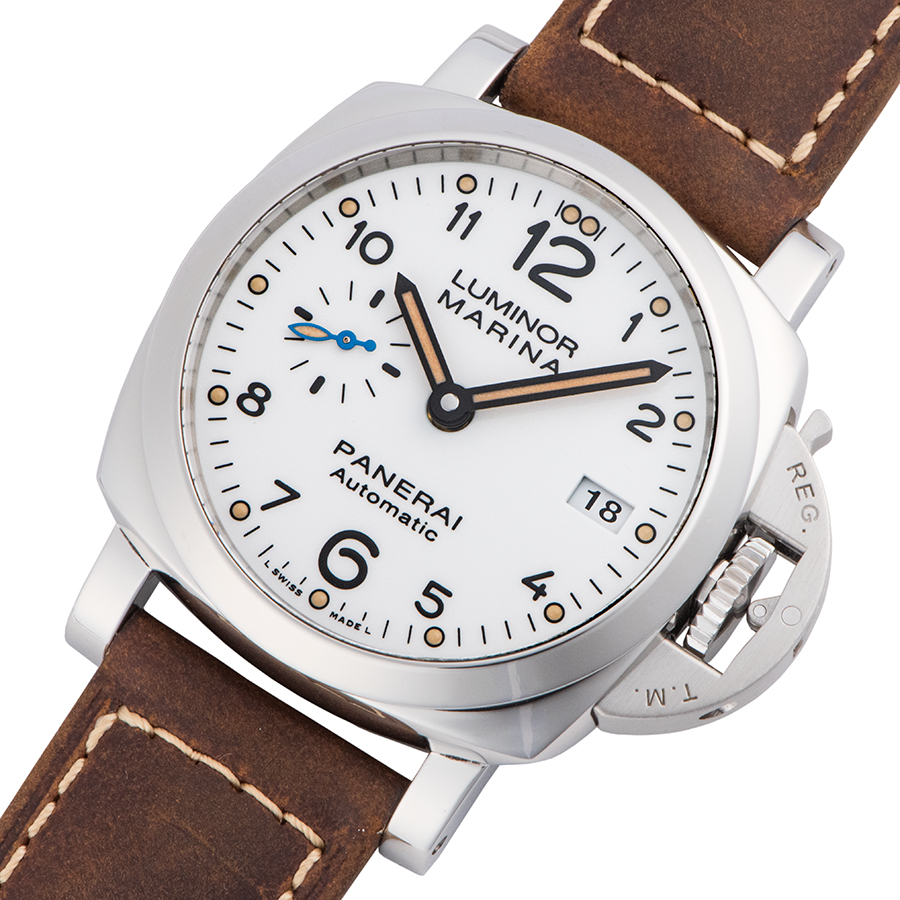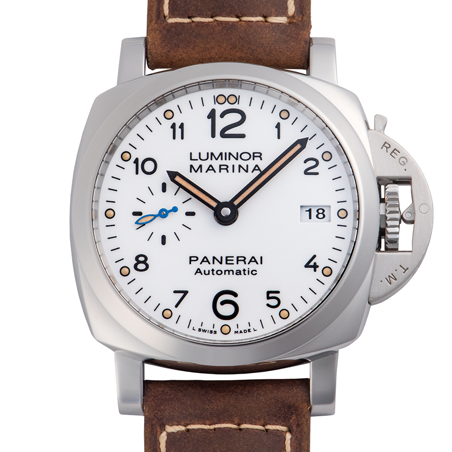 | 商品説明 | ☆PAM00523の後継として新たな3日間のパワーリザーブを備えたパネライ自社製自動巻きムーブメント「P.9010」を搭載したモデルです。 焼けたような色合いの夜光を使用しヴィンテージ感を出しています。 ※微細な拭き傷程度はありますが、敢えて仕上げをする程ではございません。 目立つ大きな傷などなく大変綺麗な状態です。 新品純正革ベルトに交換済みです。 |