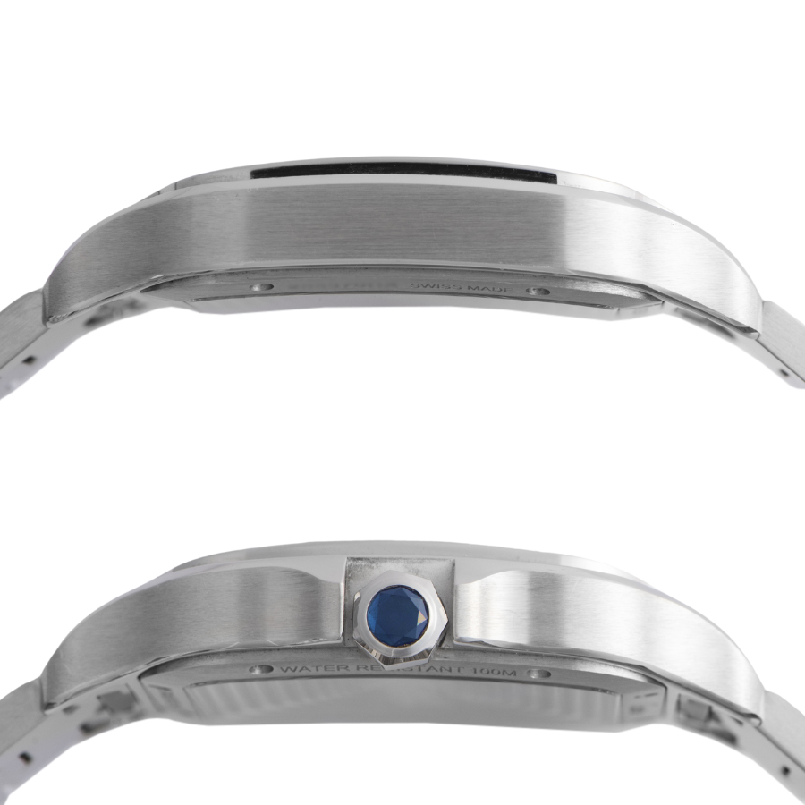 | 商品説明 | ☆2018年に復活したサントスシリーズから、39.8mmのLMサイズのスケルトンモデルになります。ローマ数字を象ったスケルトンブリッジが特徴の手巻きキャリバー「9611MC」を搭載しています。 |