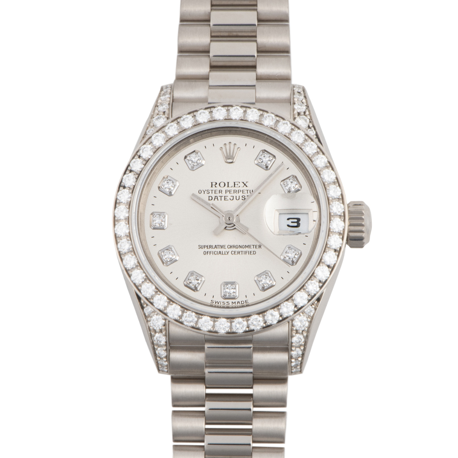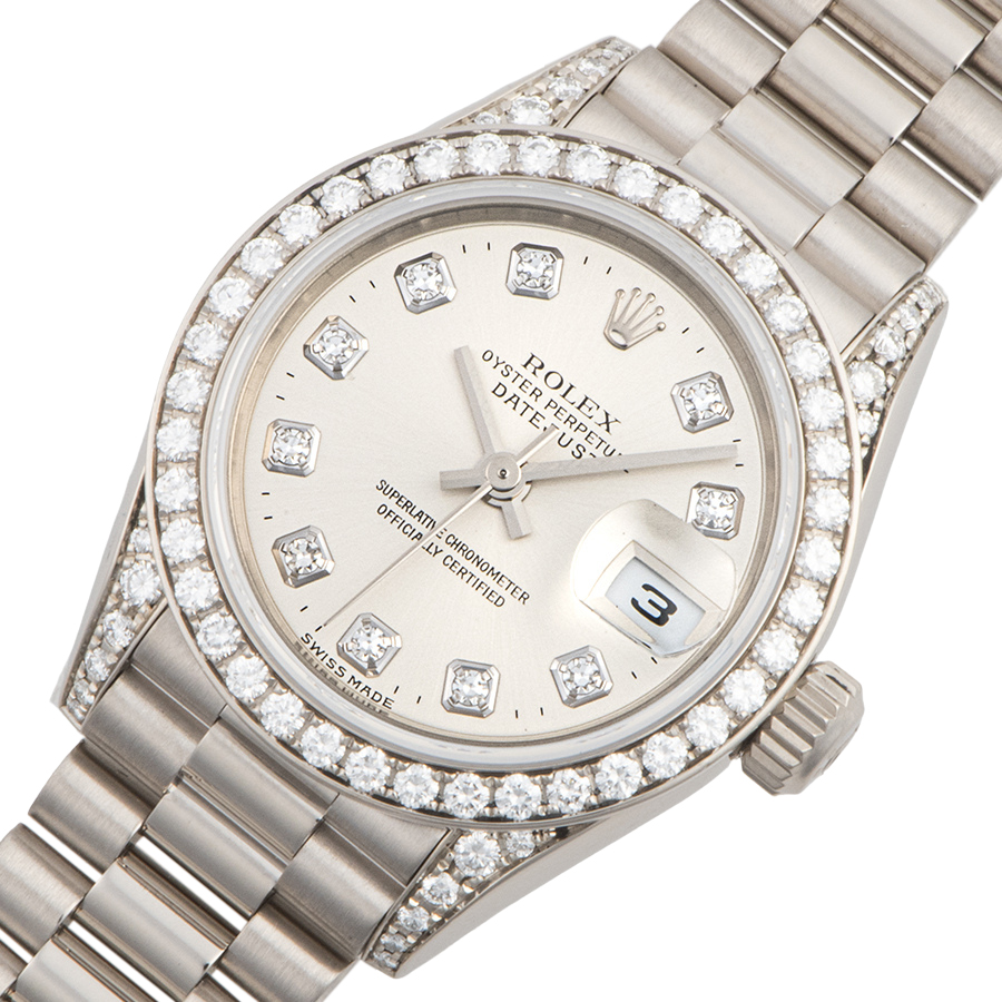 | 商品説明 | ☆ロレックスの代名詞ともいえる定番モデル「デイトジャスト」。 こちらはK18WG無垢ケースにベゼルと文字盤にダイヤモンドをセッティングした豪華なモデルです。 ※外装仕上げ済みで目立つ大きな傷などなく、大変綺麗な状態です。 |