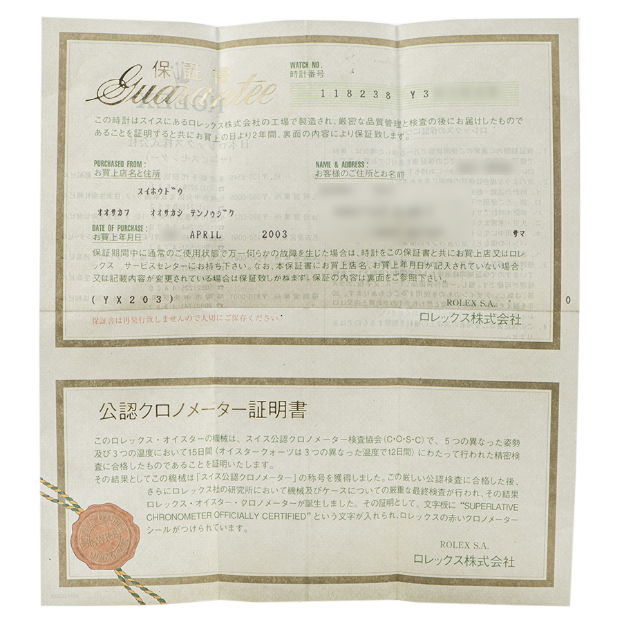 ロレックス デイデイト 118238A Y番