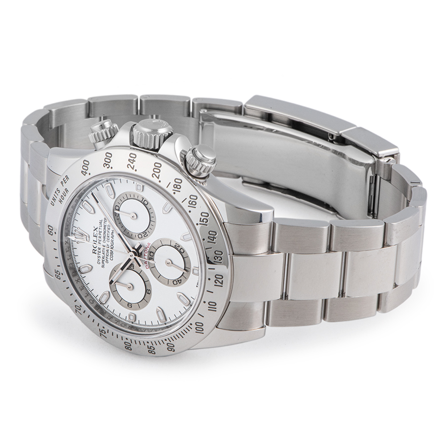 | 商品説明 | ☆ロレックス・スポーツコレクションの最高峰として、圧倒的な人気を誇るクロノグラフモデル。 2000年に誕生の116520は、初の自社設計クロノムーブメントCal.4130を搭載、約16年間のロングセラーモデルです。 こちらは文字盤の「COSMOGRAPH」ロゴが、“COSMOGR”と“APH”の間にスペースがある通称「APHダイアル」とよばれる個体です。 ※外装仕上げ済みで、目立つおおきな傷や致命的なダメージはなく大変綺麗な状態です。 バックルは梨地タイプになります。 |