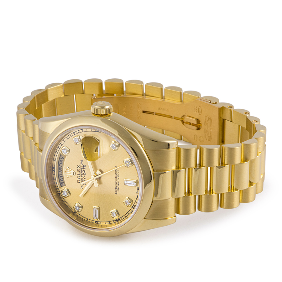 | 商品説明 | ☆ロレックスのシリーズ中、最高級ラインに位置するデイデイト。 イエローゴールド素材のケースに、10ポイントダイヤモンドを配置したシャンパンダイヤルが豪華な印象です。 ※ケース痩せを考慮して敢えて外装仕上げは行っておらず、拭き傷程度の薄い線傷がありますが特筆すべき傷等はなく大変綺麗な状態です。 2022/2にメーカーでOH済みです。 |