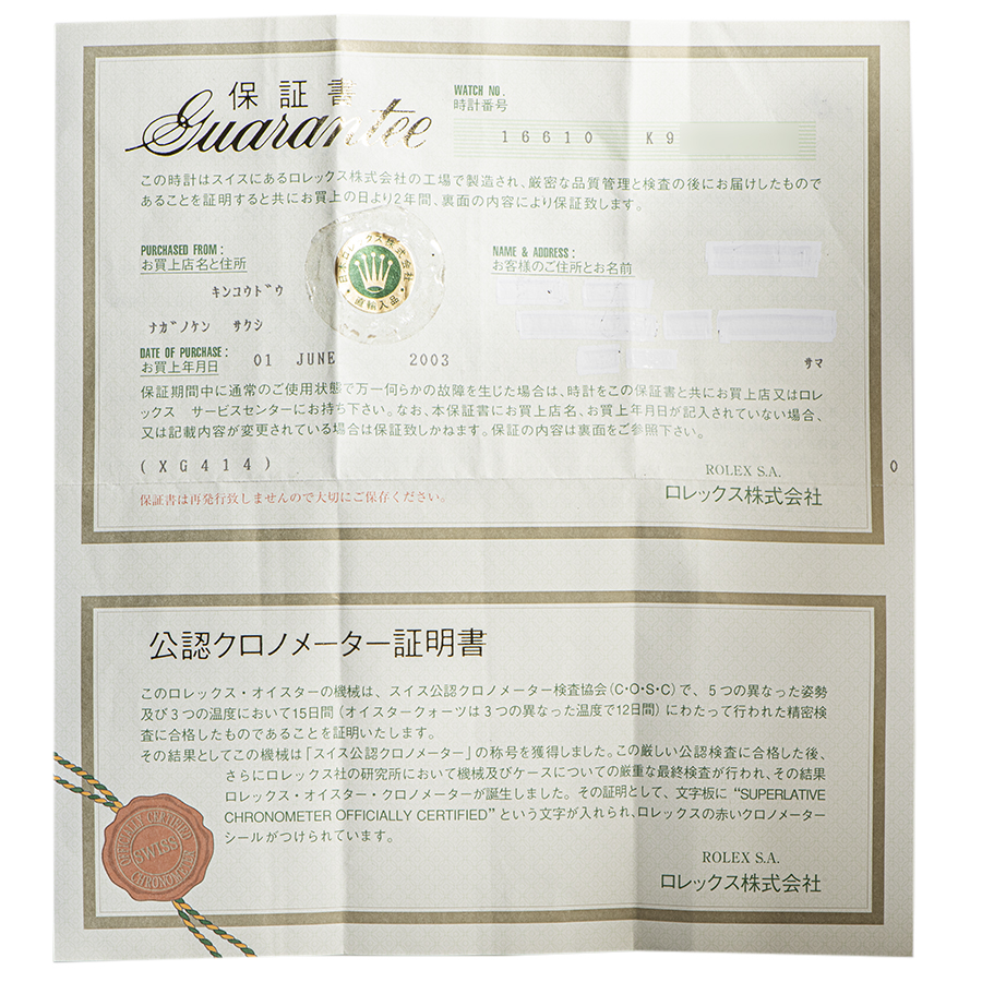 ロレックス サブマリーナデイト 16610 K番