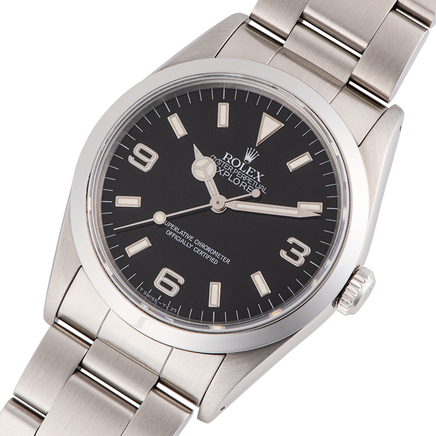 | 商品説明 | ☆生産終了モデルのエクスプローラーIです。 オールトリチウム夜光、シングルブレス、初期生産仕様の横穴ありタイプになります。 ※外装仕上げ済みで目立つ大きな傷などなく大変綺麗な状態です。 ガラス風防12時側の角に爪でなぞると僅かにザラッとするようなガラス欠けがありますが、肉眼では見えない程度です。 |