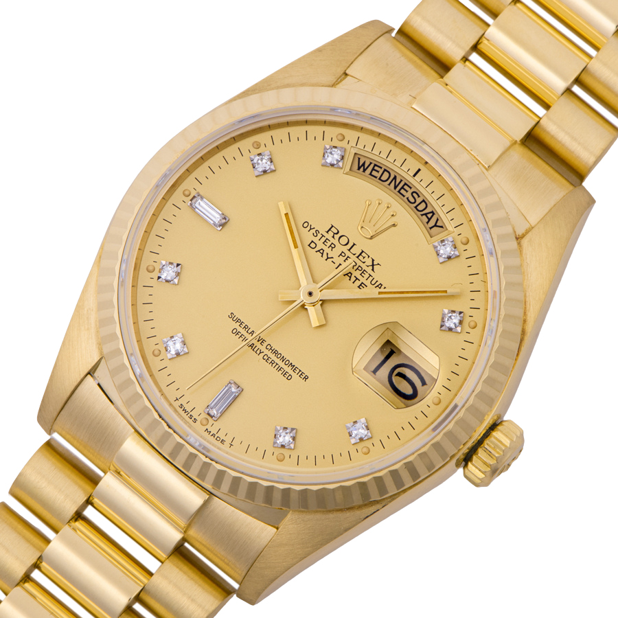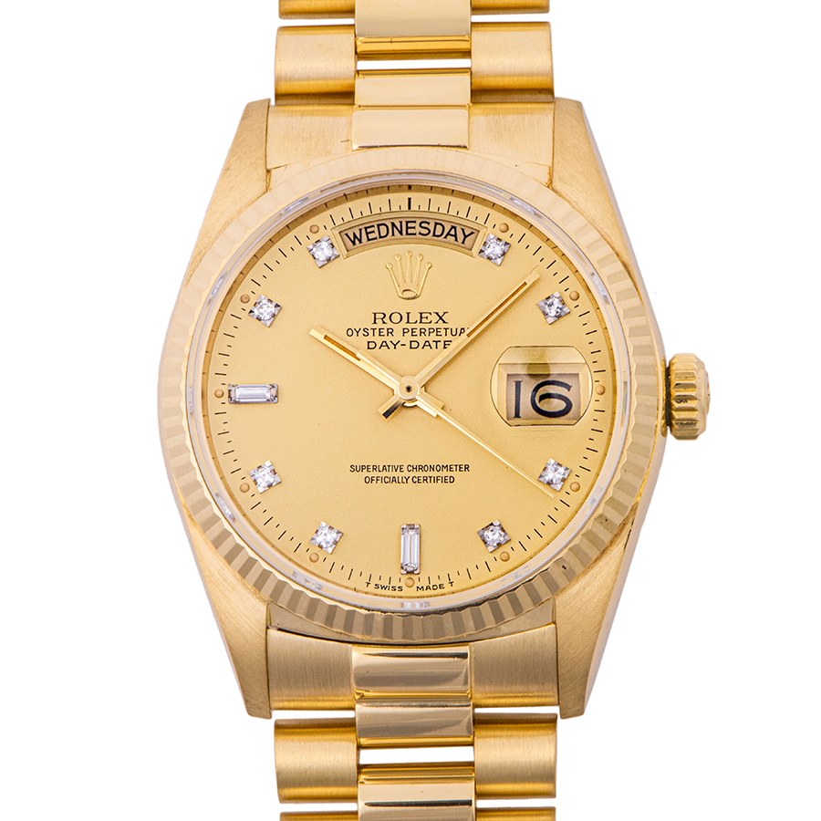 | 商品説明 | ☆K18YG製シャンパンダイアルのデイデイトが入荷致しました。 ※研磨仕上げ済みとなりますので、特筆すべき大きなダメージなど無く大変綺麗な状態です。 ブレスレットの伸びも少なく、コンディションはとても良いです。 |