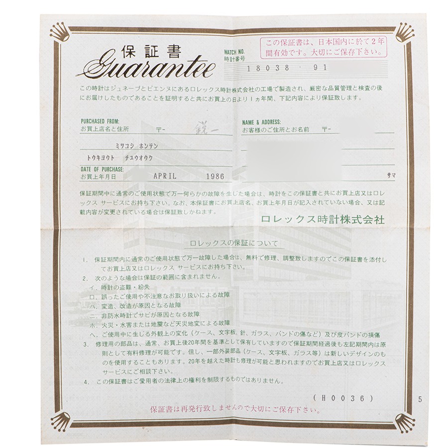 ロレックス 18038A 1986年製