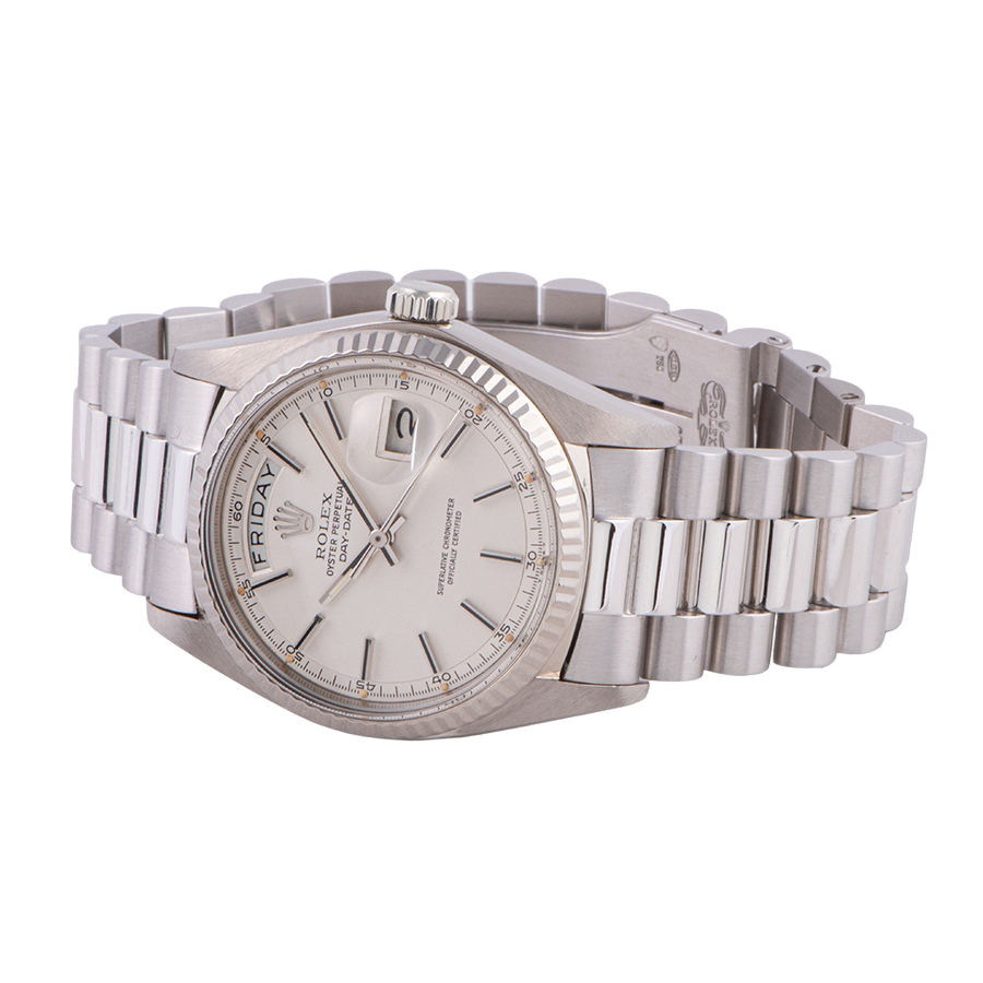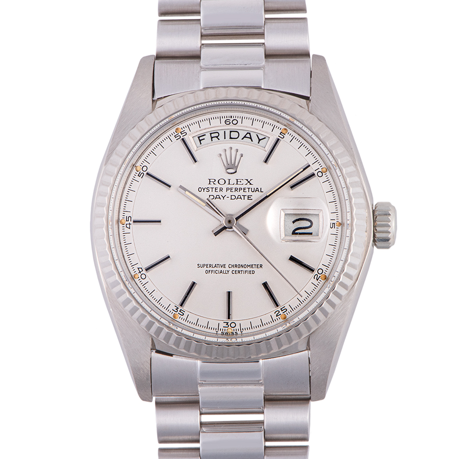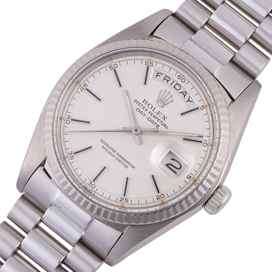 | 商品説明 | ☆デイデイトのホワイトゴールド無垢のアンティークモデルが入荷致しました。 個体数が少ない希少なホワイトゴールドモデルです。 ケースの痩せやブレスレットの伸びが少なく、コンディションはとても良いです。 針に僅かな傷がありますが、文字盤や夜光に目立つ劣化やシミはありません。 ※ケース本体やブレスに使用に伴う小傷がありますが、当時の雰囲気を損なわないよう傷はあえてそのままの状態にしております。年代を考慮して頂ければコンディション大きな問題はございません。 |