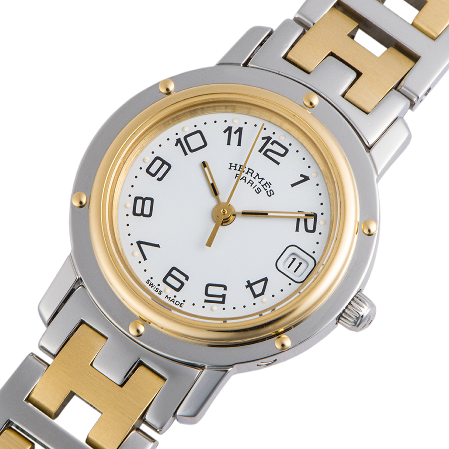 | 商品説明 | ☆エルメス定番モデルのクリッパーです。 19世紀に使用されていた3本のマストの付いた大型快速船の舷窓デザインを原型とし、ベゼルにあしらったビスで忠実に再現しています。 ※外装仕上げ済みで、目立つ大きな傷などなく大変綺麗な状態です。 ブレス部分に使用に伴うわずかな小傷は残ります。 |