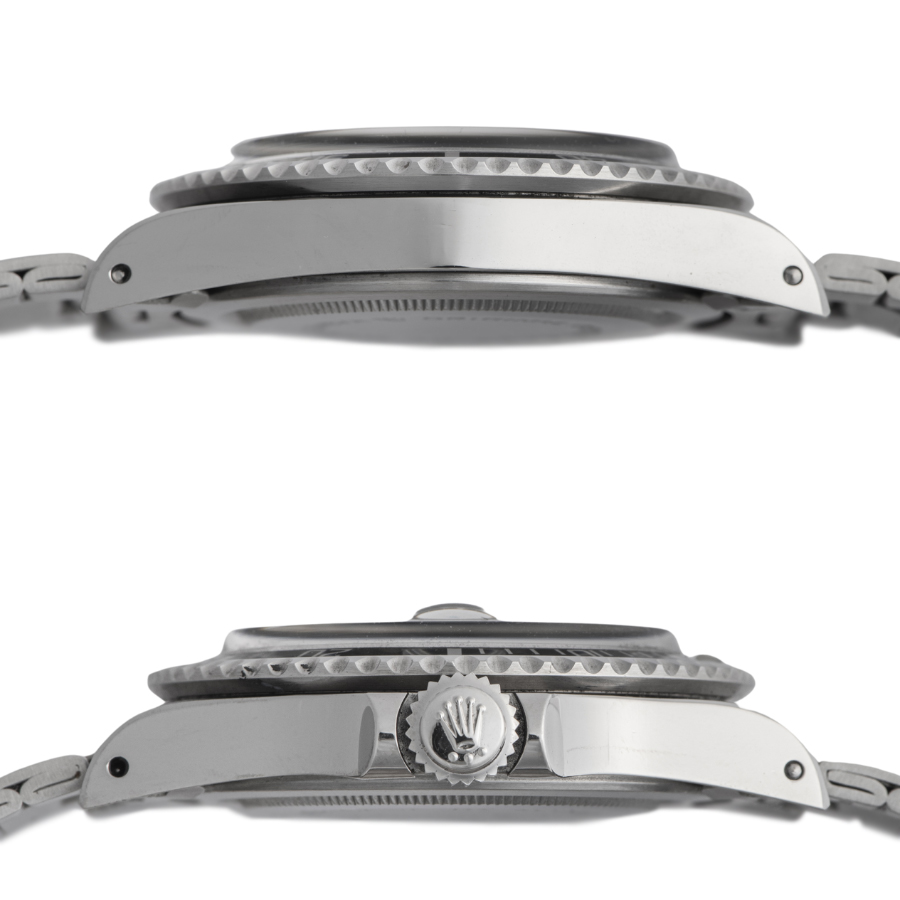 | コンディション | ガラス:欠けやキズはありません 文字盤、針:夜光は全てトリチウム、綺麗な状態 ベゼル:綺麗な状態 ケース:薄っすらと線傷があります ブレスレット:巻きブレスに伸びは少なく綺麗な状態 ※研磨痩せがほとんどなく、エッジもしっかりと残っています |
