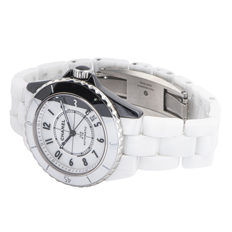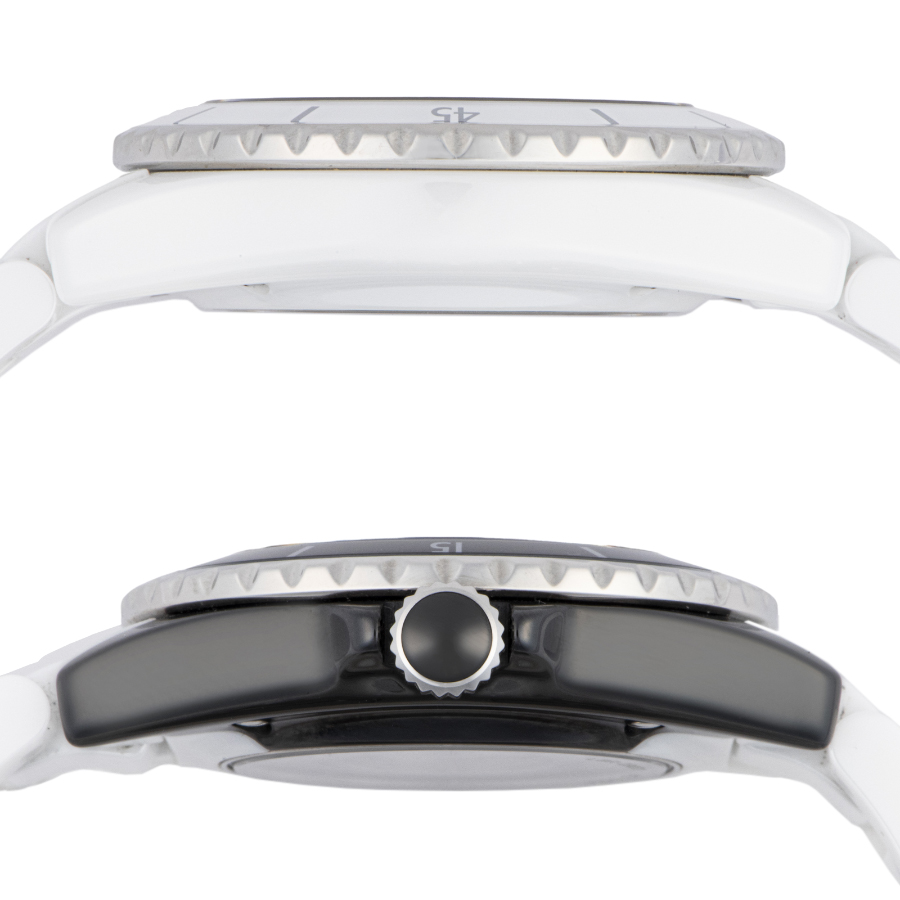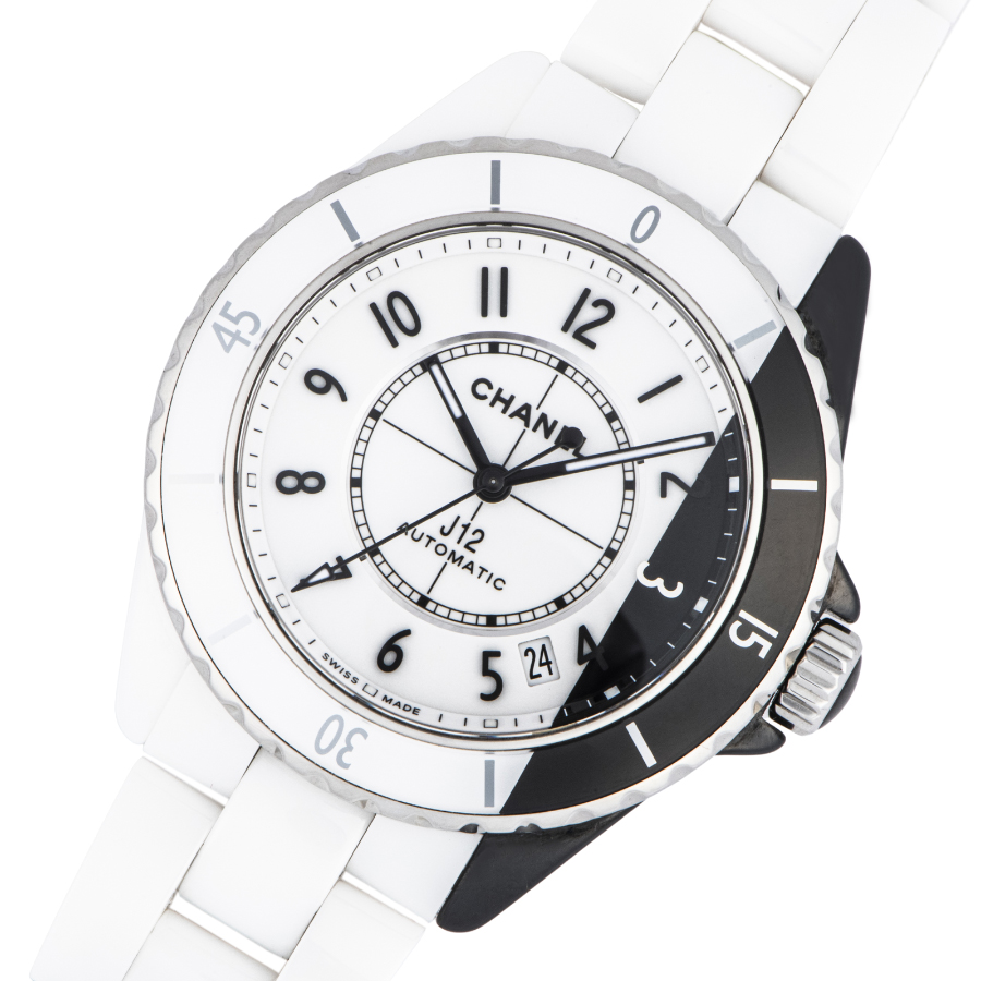 | 商品説明 | ☆初代J12が発表された2000年から20周年となる2020年のメモリアルイヤーに発表されたモデルで、シャネルを象徴する対極カラーのホワイトとブラックの2つのセラミックケースを非常に薄い特殊なブレードで切断した後に繋ぎ合わせるといった高度なテクニックによって作られ、一つのタイムピースに落としこんだ注目すべきクリエイションです。 ※材質がセラミックですので小傷もなく、大変綺麗な状態です。 |