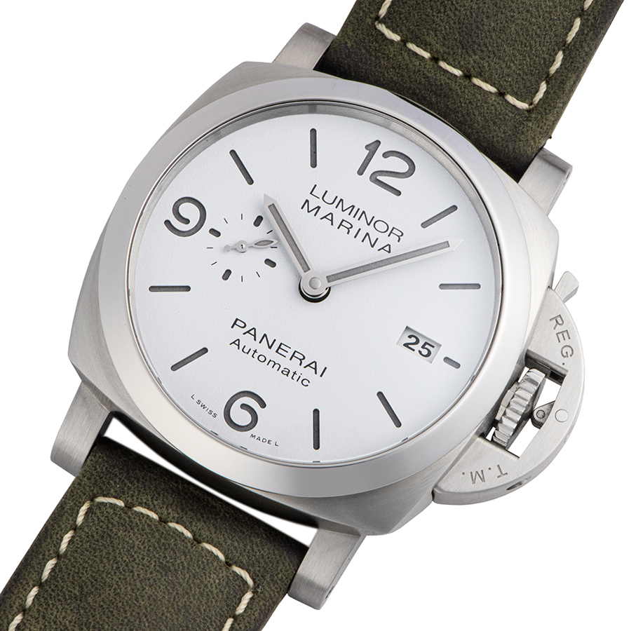 | 商品説明 | ☆定番中の定番である自動巻きのルミノール マリーナ 44mmモデルが入荷しました。 パネライのマニュファクチュールで開発・製造した自社製P.9010 キャリバーは、中央に時針と分針、9時位置にスモールセコンド、3時位置に日付表示を備えています。 時針だけを1時間ずつ前後にジャンプさせる機能で、分針の動きに妨げられることなく時間を調整することが可能です。 ※目立つ大きな傷などなく大変綺麗な状態です。 純正革ベルトにヨレがあります。使用感は少なく大きな劣化はありません。 |