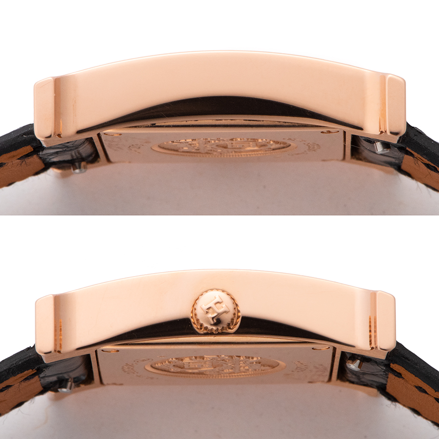 | 商品説明 | ☆エルメスの頭文字である【H】をモチーフにしたデザインのHウォッチです。 ピンクゴールド製のケース正面全体に、純正ダイヤモンドがセッティングされた豪華なモデルとなります。 ※外装仕上げ済みですがケースサイドに薄い線傷や小さいポツポツとした打ち傷がございます。 その他目立つ大きな傷などなく綺麗な状態です。 純正ベルトに使用感がありますが、まだまだご使用頂けます。 |