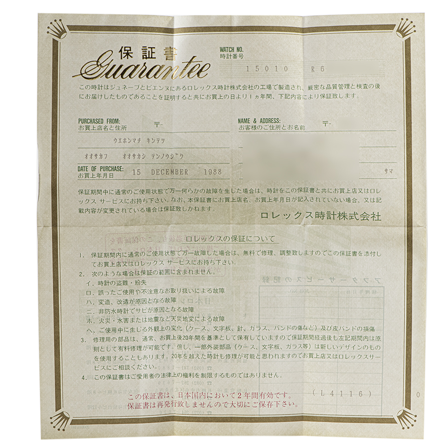 ロレックス オイスターパーペチュアルデイト 15010 R番