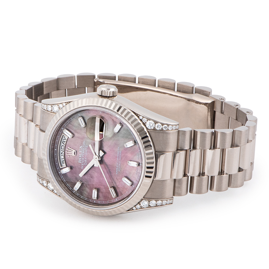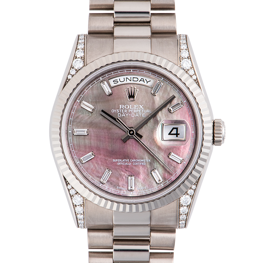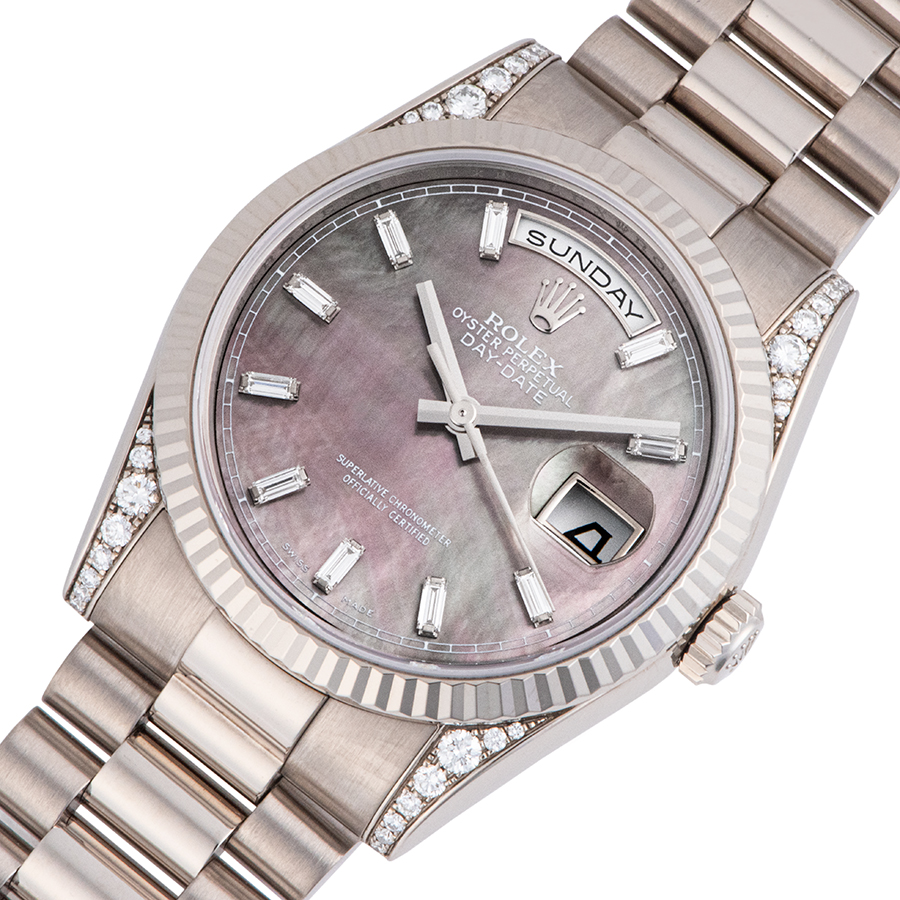 | 商品説明 | ☆ロレックスのラインナップの中で最上級に位置するのがデイデイトです。 こちらはラグにダイヤモンドをセッティングし、ダイアルにはバゲッドダイヤとブラックシェルを合わせた豪華なモデルです。 ※ケースサイド7時位置にほんの小さな打痕が1箇所ありますが、着用時はほぼわからない程度です。 外装仕上げ済み、目立つ大きな傷などはなく大変綺麗な状態です。 |