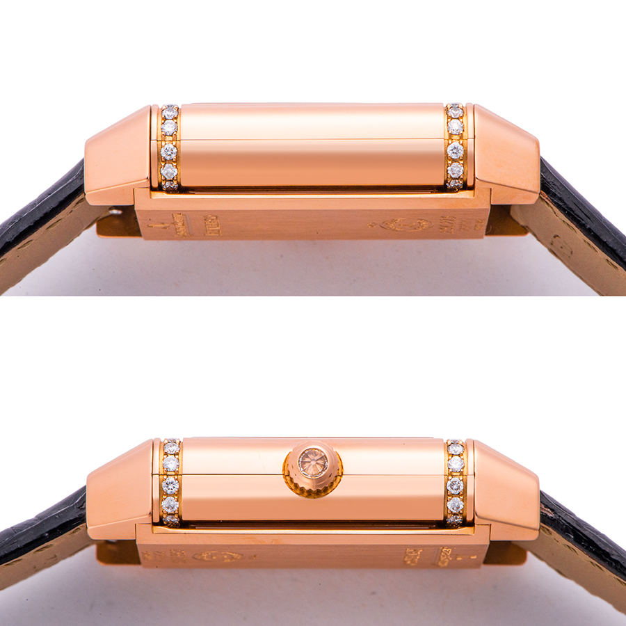 | 商品説明 | ☆ラテン語で「反転する」を意味するこのモデルは、1931年に誕生し現在まで続いてるジャガールクルトのアイコンモデルです。 こちらはケースに並べられたダイヤモンドとピンクゴールドの無垢ケースの豪華な雰囲気のモデルです。 表面はシルバーダイアル、裏面はブラックダイアルになっており、昼と夜など、様々なシーンでの使い分けが可能です。 ※外装仕上げ済みで、特筆すべきダメージはなく大変綺麗な状態です。 新品の純正革ベルトが装着されております。 |