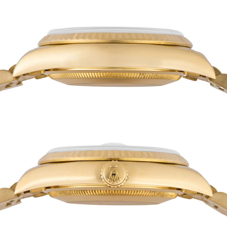 | 商品説明 | ☆K18YG無垢モデルでずっしりとした重量感のある、ロレックス最高峰のドレス系モデルです。 綺麗なシャンパンダイアルに8Pダイヤ、2Pバケットダイヤをセッティングした華やかなモデルです。 ※研磨仕上げ済みで全体に綺麗ですが、ブレスポリッシュ部分に微細な使用キズが残ります。 その他目立つ大きな傷などはなく概ね綺麗な状態です。 ブレスレットに年式相応の伸びがあります。 |