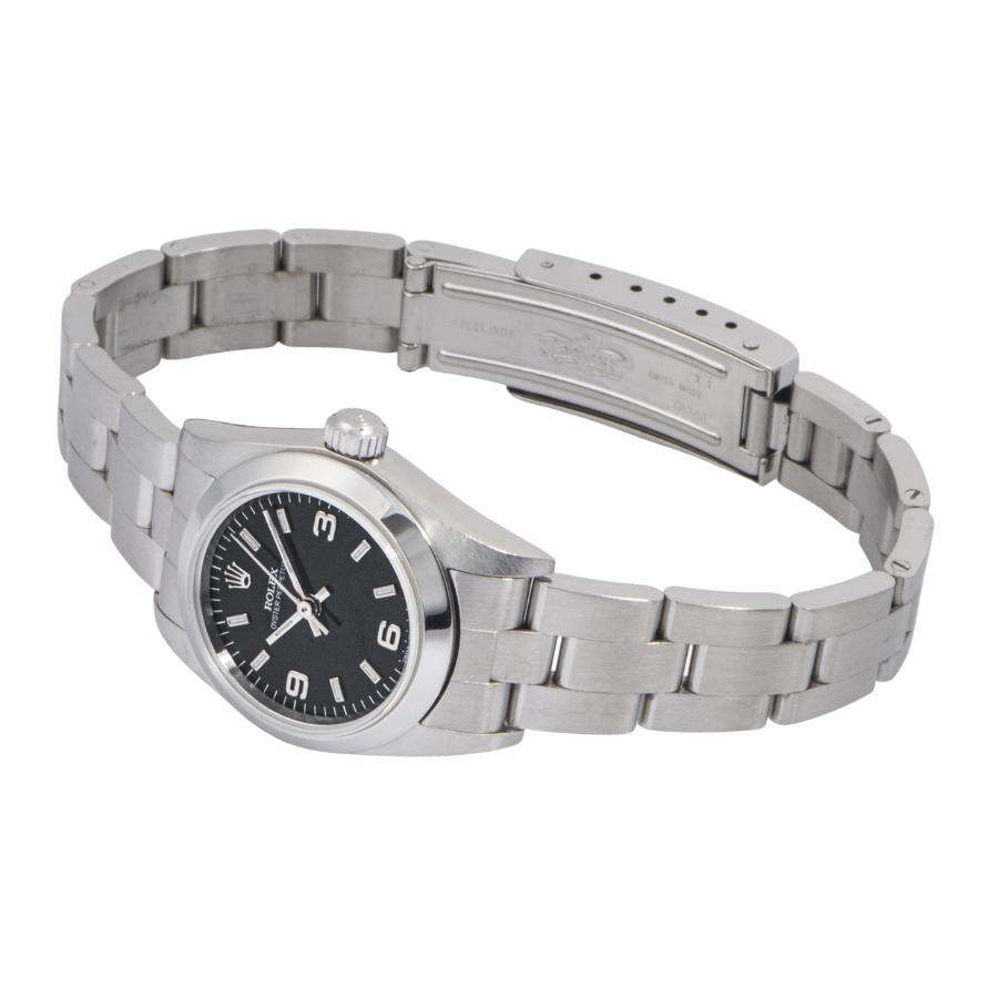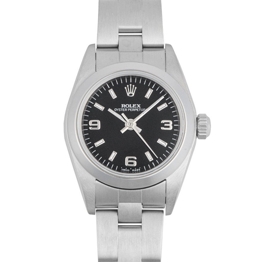 | 商品説明 | ☆レディースモデルで人気の高いオイスターパーペチュアルのブラックダイアルが入荷致しました。 ※外装仕上げ済みで、目立つ大きな傷などなく大変綺麗な状態です。 |