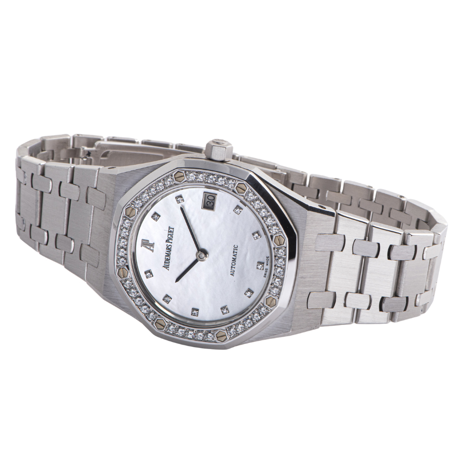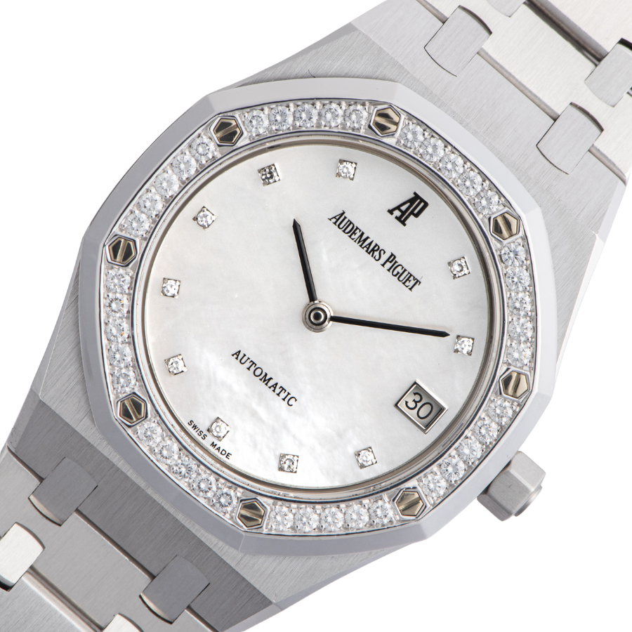 | 商品説明 | ☆Ref. 14813には12種類の文字盤があり、今回入荷したモデルはその中のシェル文字盤になります。ベゼルには 40 個以上のダイヤモンドがあしらわれ、この華やかな時計を囲んでいます。 |
