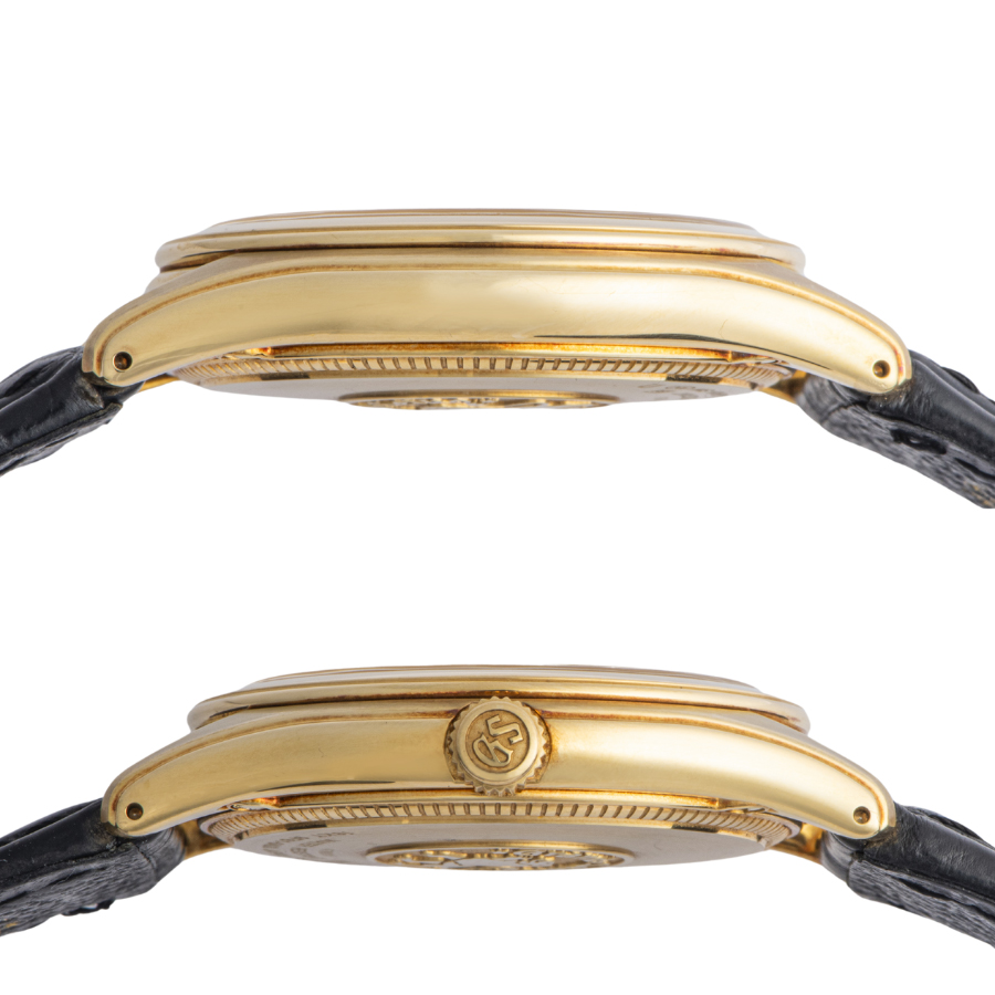 | コンディション | ガラス:欠けやキズはありません 文字盤、針:大変綺麗な状態 ベゼル:12時位置に打ち傷があります ケース:金特有の変色があり、7時位置のラグ部分に傷があります ストラップ:使用感は少なく、綺麗な状態 |
