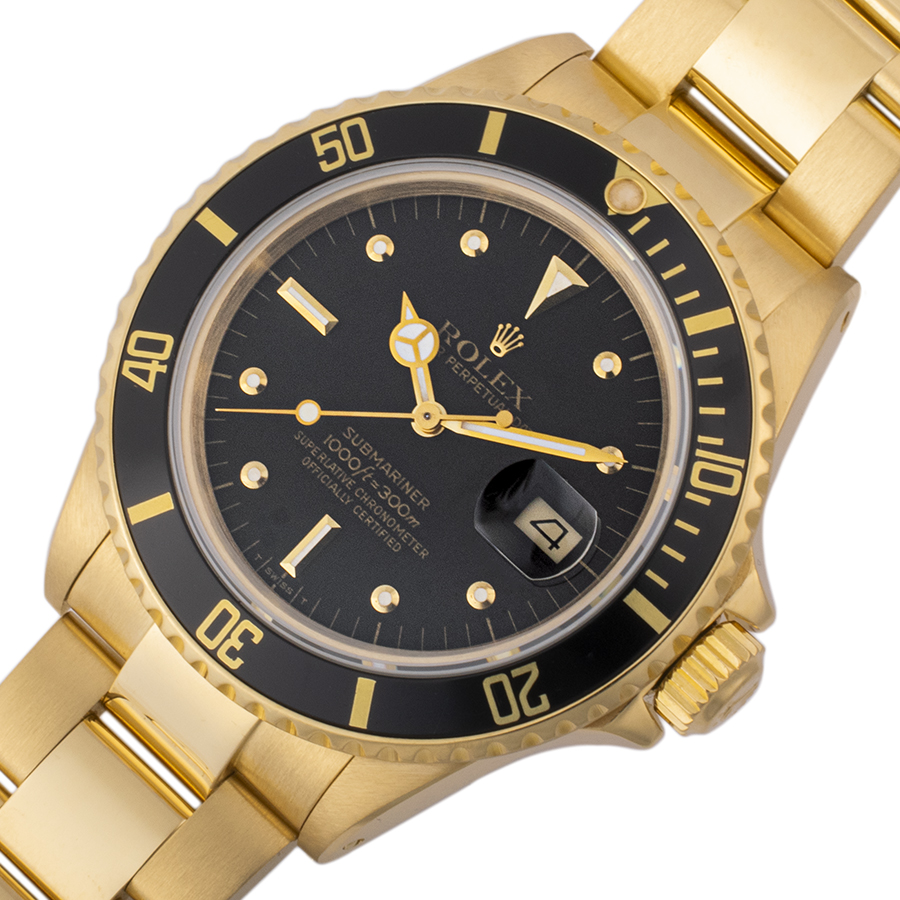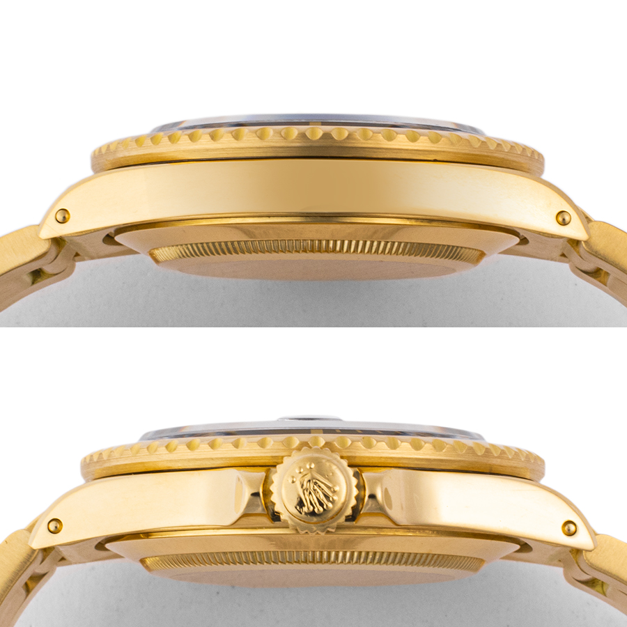 | 商品説明 | ☆サブマリーナーのイエローゴールドとしては、セカンドモデルにあたる16808が入荷いたしました。 夜光塗料の面積が非常に少ないアップライト仕様の、通称「フジツボ」ダイヤルです。 流通も少なく希少性が高いコレクターアイテムです。 ブレスは3連ハードの92908オイスターブレスで伸びはほとんど無く状態のいい珍しい個体です。 ※外装仕上げ済みでケース本体、ブレス共に目立つ大きな傷などなく大変綺麗な状態です。 ダイアル・針の状態は劣化などは見受けられず大変良好です。 ベゼルにわずかな小傷程度はありますが年代を考慮していただければコンディション大きな問題は御座いません。 |
