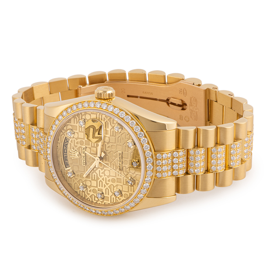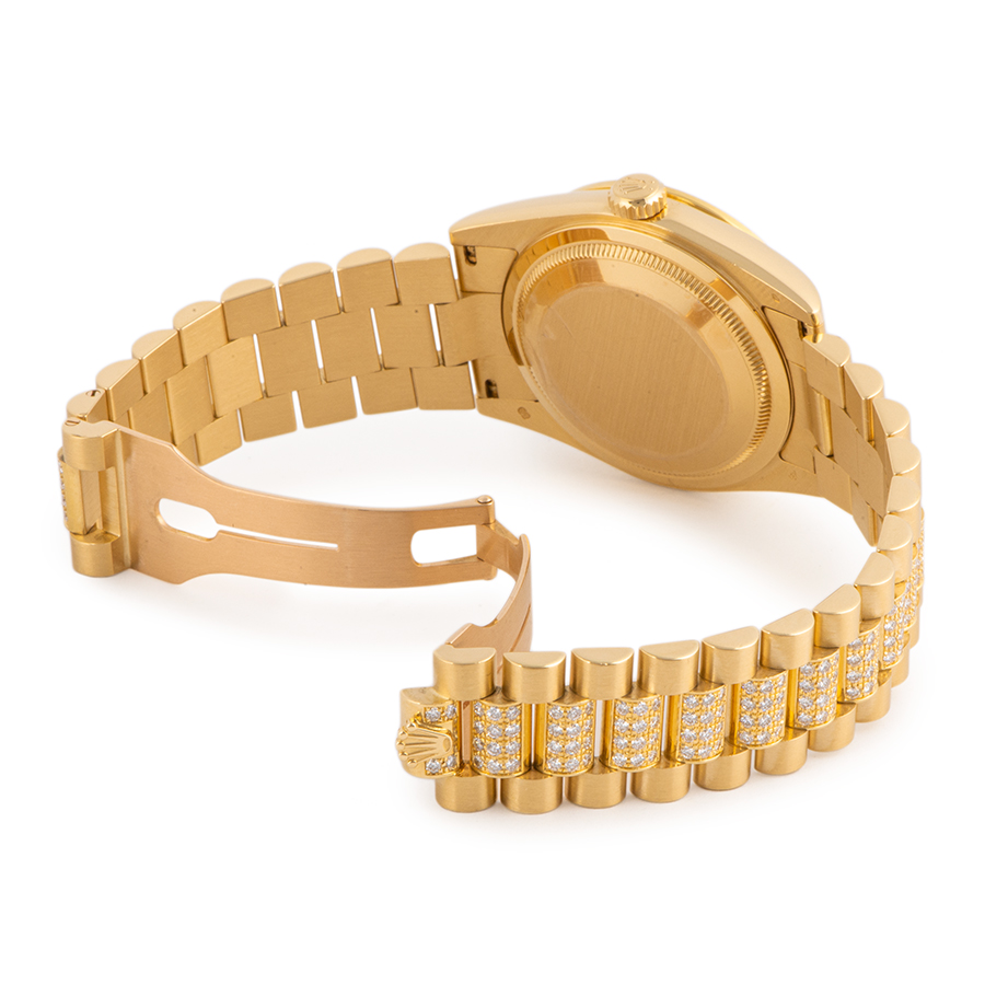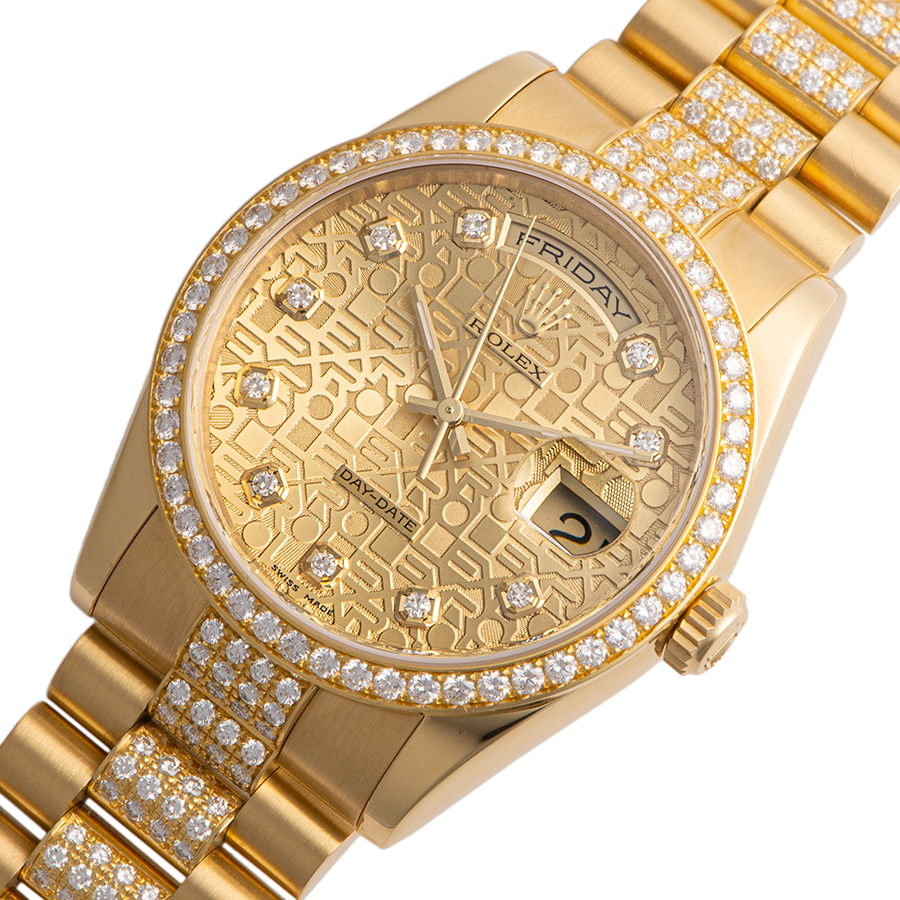 | 商品説明 | ☆ロレックスのラインナップの中で最上級に位置するのがデイデイトです。 素材はゴールドもしくはプラチナ素材のみというラインナップで、ロレックスで唯一フルカレンダー表示を搭載するモデルとなります。 ダイヤモンド入りベゼルとダイヤモンド入りプレジデントブレスレットを備えより豪華なモデルとして仕上がっています。 ※ケース本体はわずかな拭き傷程度で、目立つダメージなどなく大変綺麗な状態です。 ブレス12時側の1.2コマ目に小さな小傷が僅かにあります。 その他特筆すべきダメージは見受けられません。 |