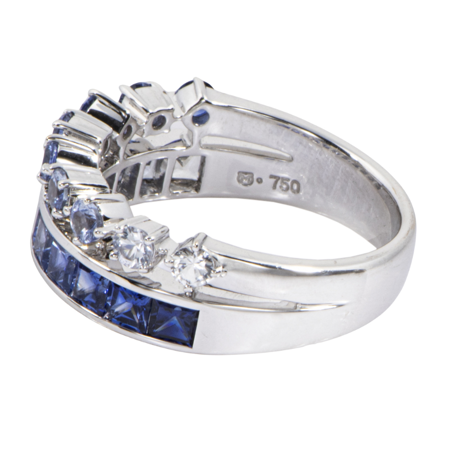 | 商品説明 | ☆寄せては返す波の美しさをサファイアのグラデーションで表現。 海の色彩の移ろいをスクエアカットのラインに、さざなみの動きを表すラウンドカットのラインを組み合わせて表情豊かに。 |