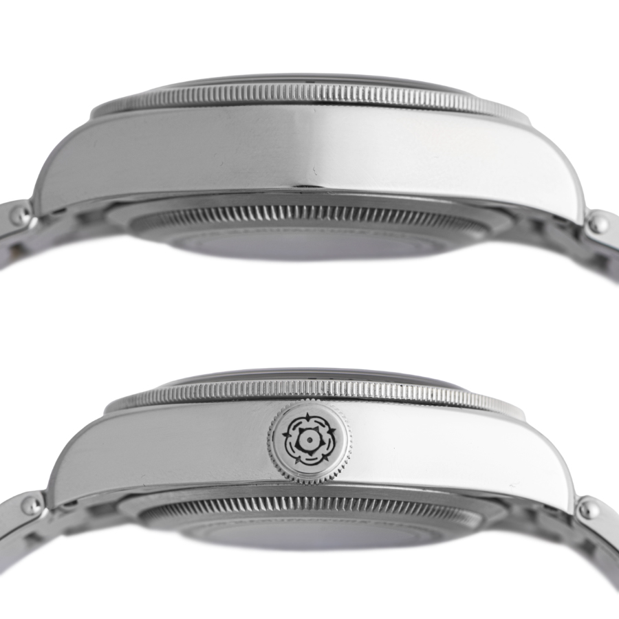 | コンディション | ガラス:欠けやキズはありません 文字盤、針:大変綺麗な状態 ベゼル:6時側9時側に着用時目立たない程度の線傷があります ケース:微細な拭き傷やケースサイド左側に薄い打ち傷がポツポツと残りますが目立つ傷はなく概ね綺麗な状態 ブレスレット:ブレス12時側に1箇所小さな打ち傷があります。バックルに使用に伴う小傷が僅かにありますが、目立つ大きな傷はなく概ね綺麗な状態 |
